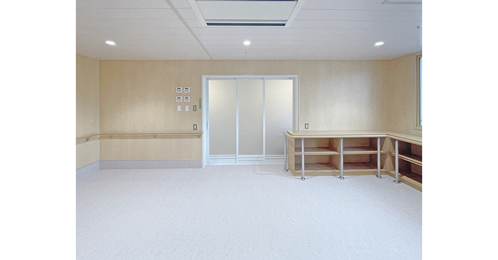 3方向介助が可能な個浴槽と将来的な機械浴導入に対応約5.2m×7.6mの大型ユニットに、1200サイズの個浴槽を1台設置。浴槽は3方向からの介助が可能で、周囲にシャワーカーテンを設置し、プライバシーを確保しています。 洗 ... 続きを読む