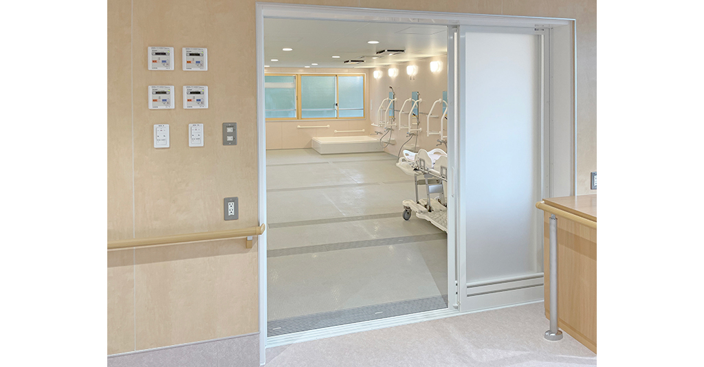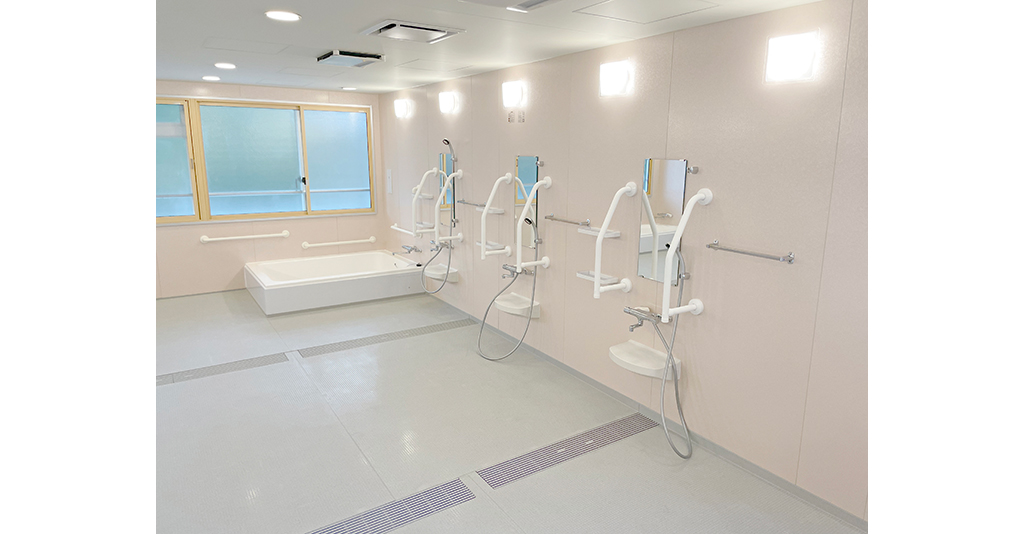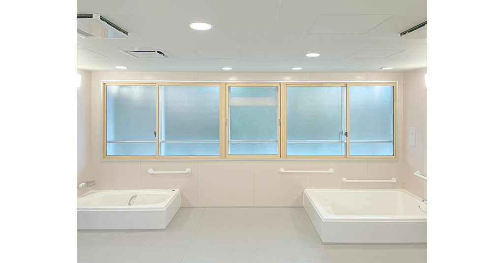自立入浴を支援し将来的な機械浴導入にも対応約5.5m×5.5mの特注大型浴槽を備えた共同浴場タイプのユニットです。 浴槽は柱欠きに対応した形状で、内部にステップを設けることで出入りをしやすくし、底面にはノンスリップ加工を ... 続きを読む