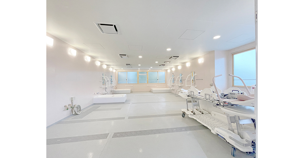 介護入浴機器(シャワー浴タイプ)と大型浴槽の設置に対応 6.1m×7mの広々としたユニット内にシャワー浴タイプの介護入浴機器「セレーノ」と2000×1600サイズの大型浴槽を設置。 「セレーノ」はストレッチャーに寝たまま ... 続きを読む