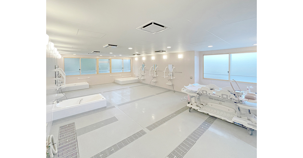 大型ユニットで座ったまま介助入浴が可能!衛生的設備も完備しています。 約3.5m×4.5mある大型ユニットに座ったまま介助入浴が可能な「トゥッティ」を設置。 天井は通常よりも高めの2.5mで、柱欠きに対応しているため、広 ... 続きを読む