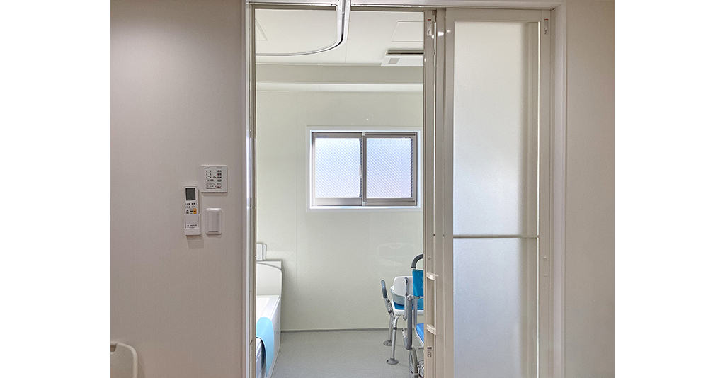 リフト動線に配慮したシステムバス病院の新築移転工事に伴い、2000×2000サイズの浴室内に機械浴槽ブランバスとリフト付シャワーキャリーを設置しました。 両開きタイプの3枚引き戸を採用することで、機器搬入や介助動線を妨げ ... 続きを読む