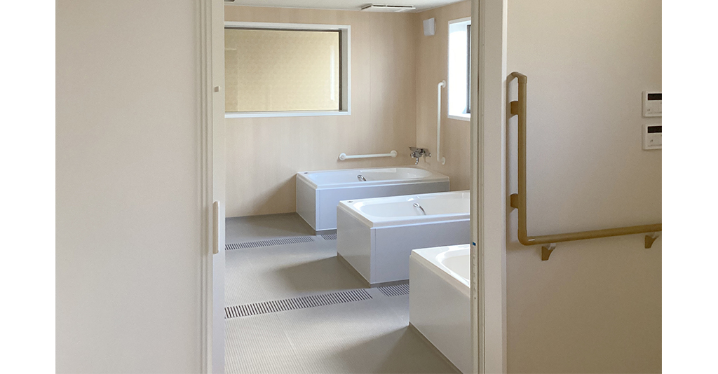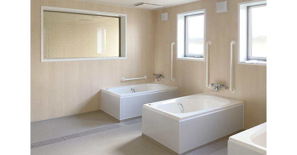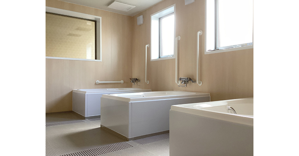 浴槽は2方向、3方向介助に対応。空間にゆとりがあるので、介助入浴がしやすいです。