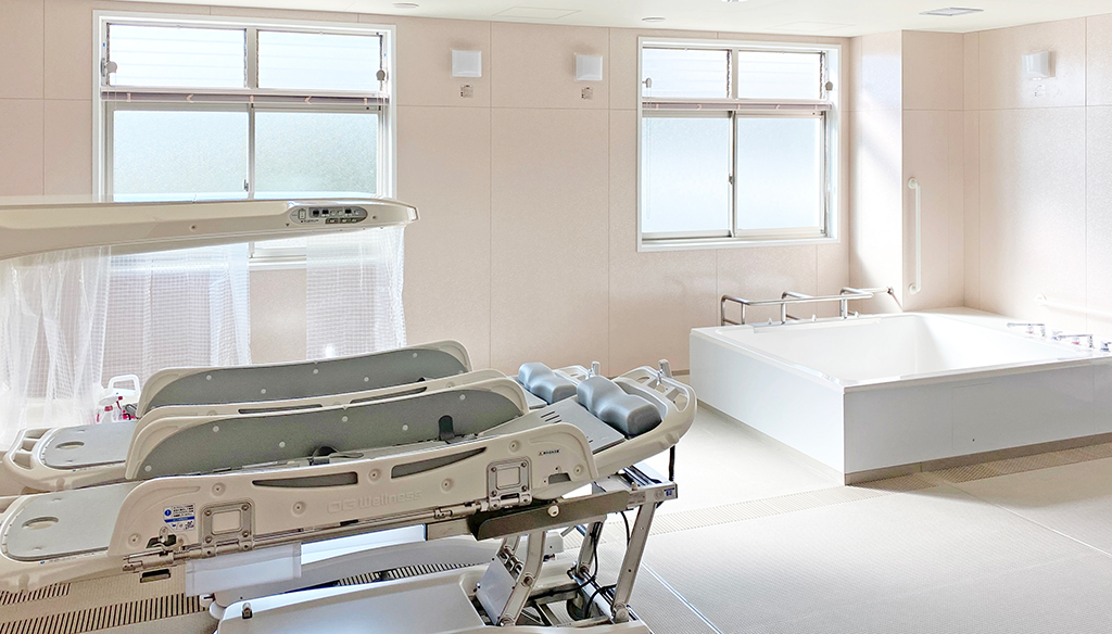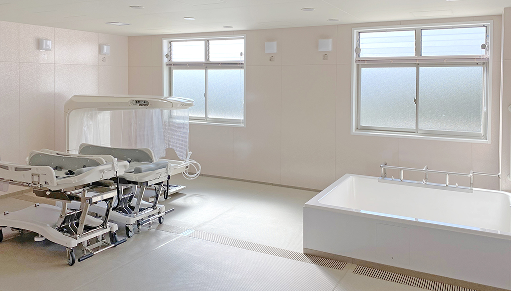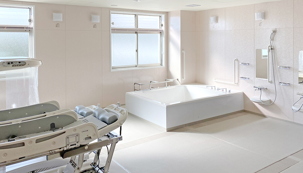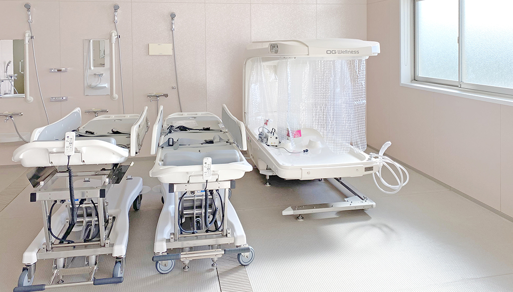 大型ユニットで座ったまま介助入浴が可能!衛生的設備も完備しています。 約3.5m×4.5mある大型ユニットに座ったまま介助入浴が可能な「トゥッティ」を設置。 天井は通常よりも高めの2.5mで、柱欠きに対応しているため、広 ... 続きを読む