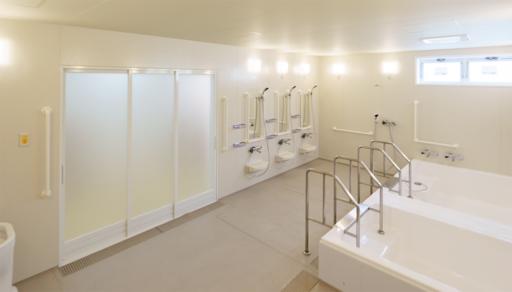 介護入浴機器(シャワー浴タイプ)と大型浴槽の設置に対応 6.1m×7mの広々としたユニット内にシャワー浴タイプの介護入浴機器「セレーノ」と2000×1600サイズの大型浴槽を設置。 「セレーノ」はストレッチャーに寝たまま ... 続きを読む