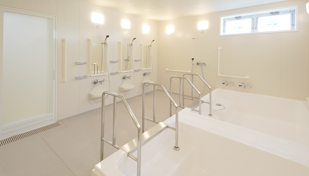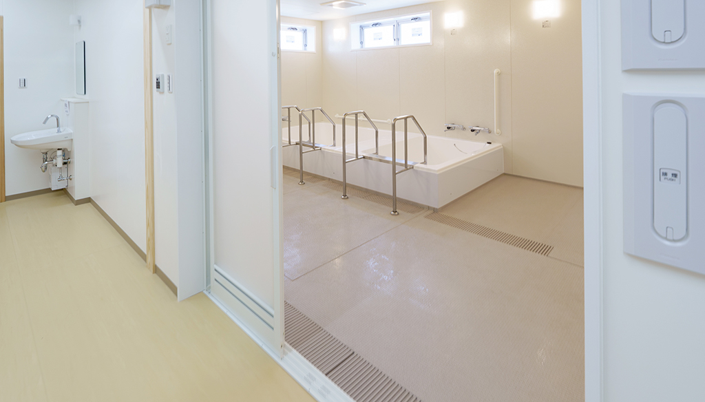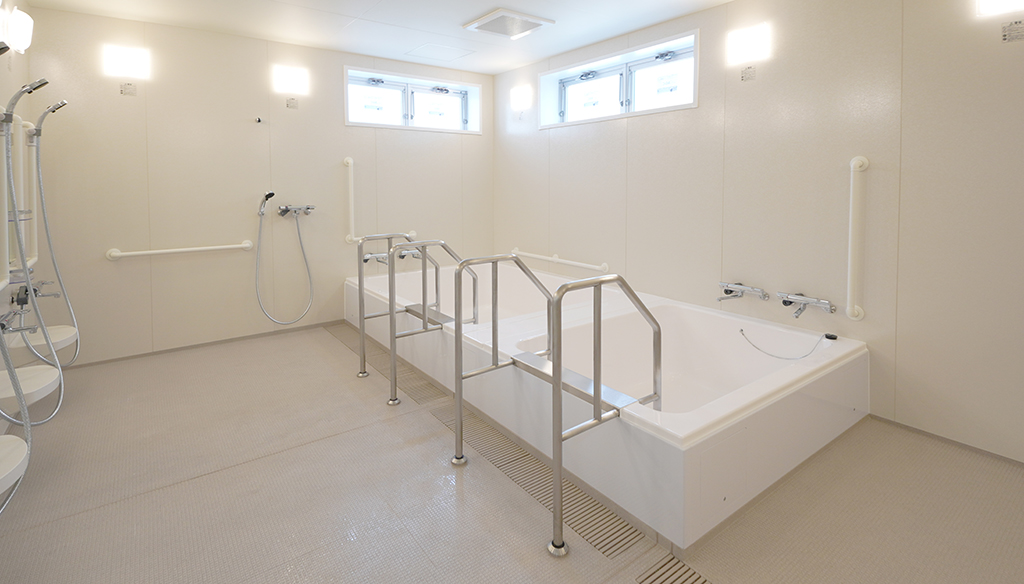 大型ユニットで座ったまま介助入浴が可能!衛生的設備も完備しています。 約3.5m×4.5mある大型ユニットに座ったまま介助入浴が可能な「トゥッティ」を設置。 天井は通常よりも高めの2.5mで、柱欠きに対応しているため、広 ... 続きを読む