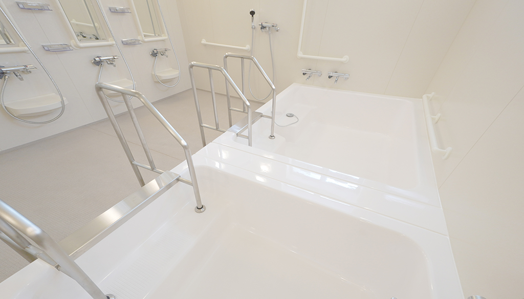 特注のSUS製手すりとステップ付きのFRP製大型浴槽を2台設置2000サイズのステップ付きFRP製大型浴槽を2台設置しました。入浴機器は座位入浴タイプの「アラエル」を導入。 身体が不自由な方でもリハビリをしながら安心して ... 続きを読む