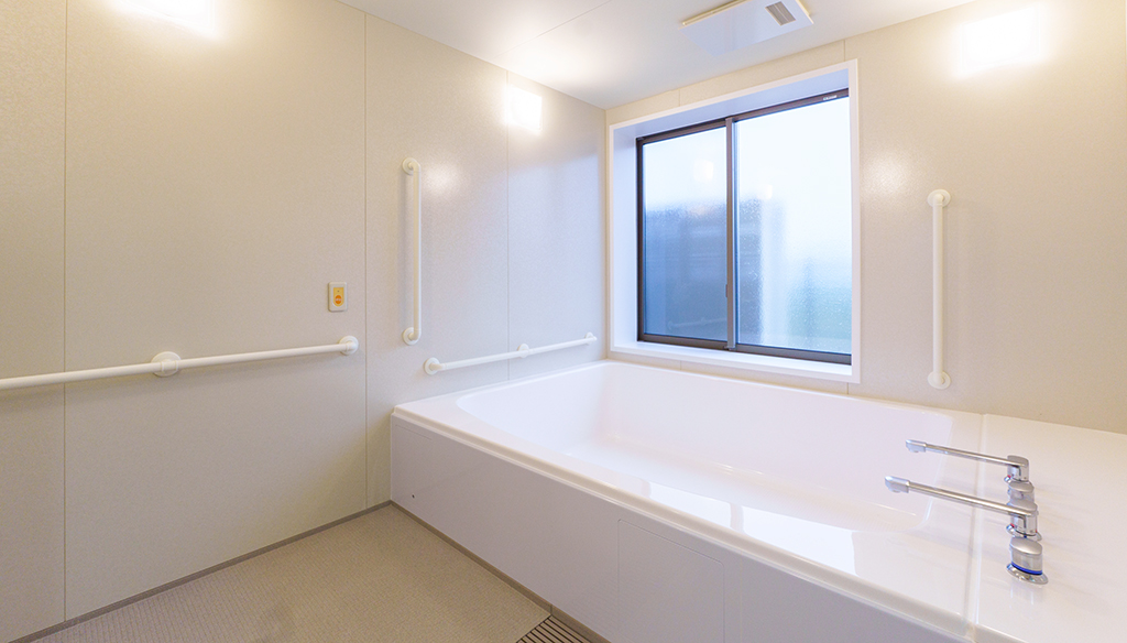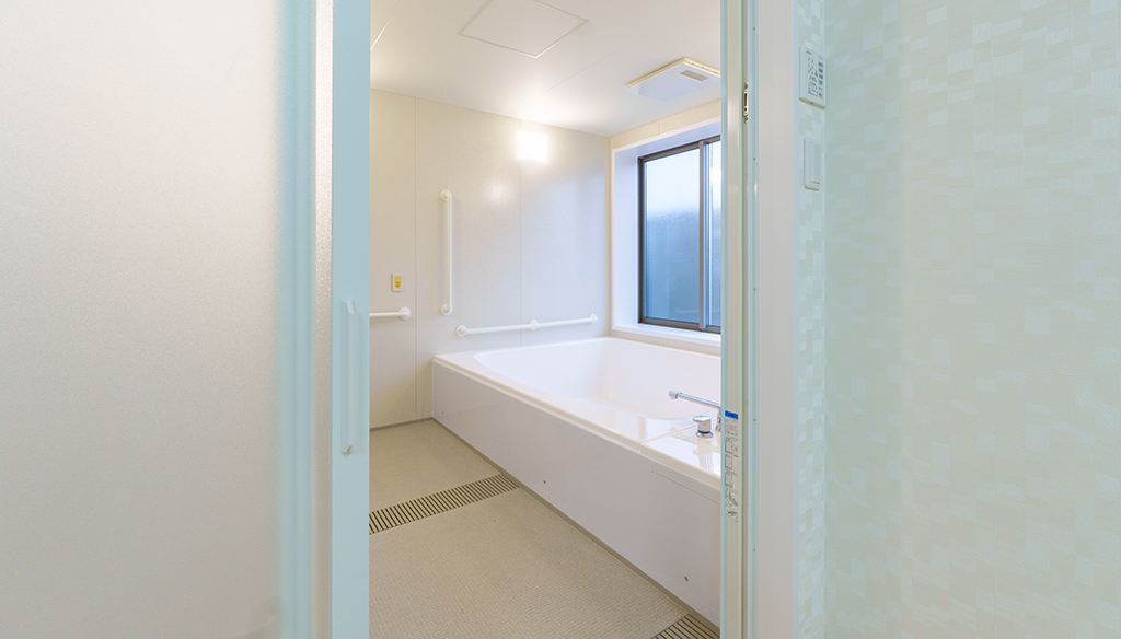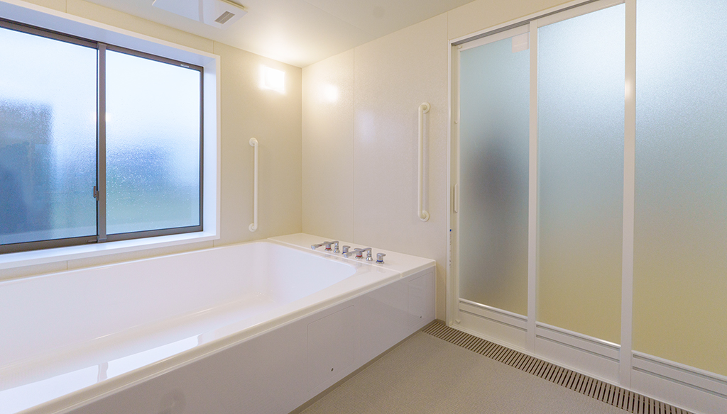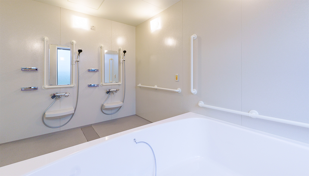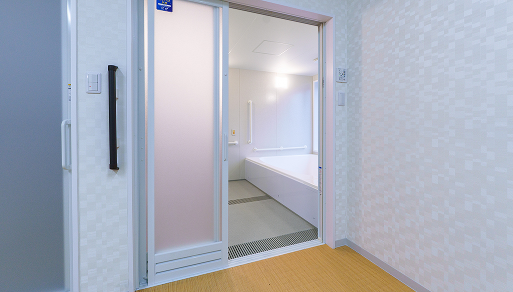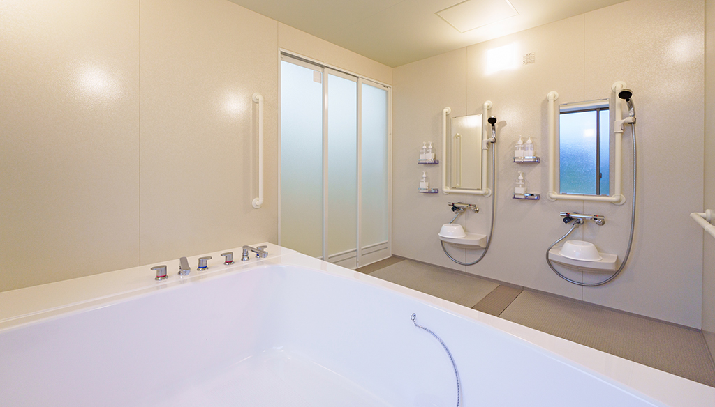 大型ユニットで座ったまま介助入浴が可能!衛生的設備も完備しています。 約3.5m×4.5mある大型ユニットに座ったまま介助入浴が可能な「トゥッティ」を設置。 天井は通常よりも高めの2.5mで、柱欠きに対応しているため、広 ... 続きを読む