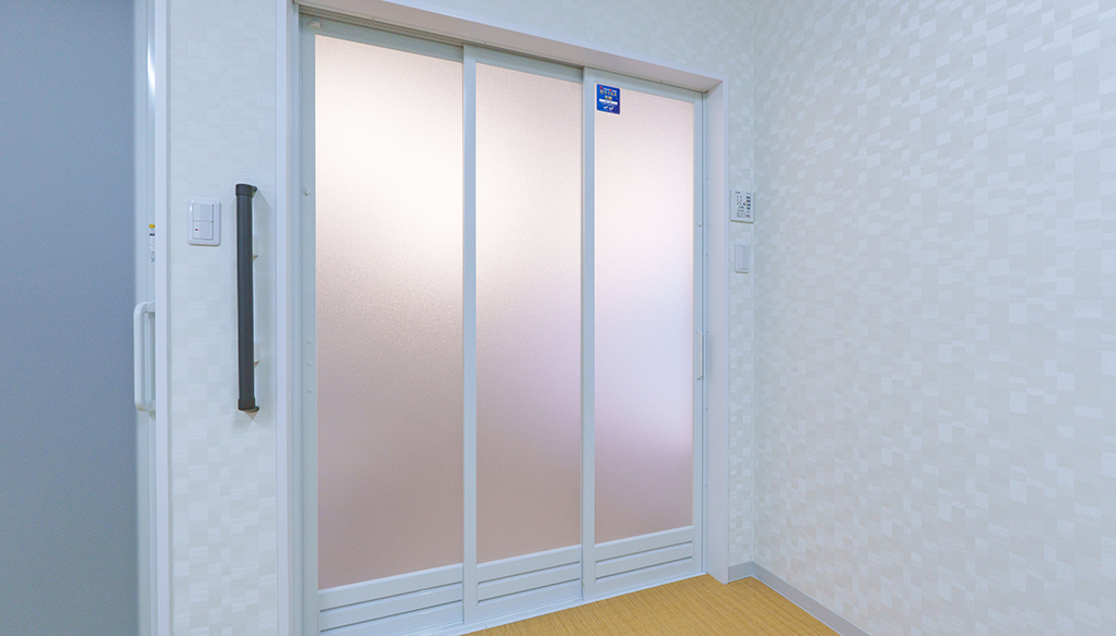 リフト動線に配慮したシステムバス病院の新築移転工事に伴い、2000×2000サイズの浴室内に機械浴槽ブランバスとリフト付シャワーキャリーを設置しました。 両開きタイプの3枚引き戸を採用することで、機器搬入や介助動線を妨げ ... 続きを読む