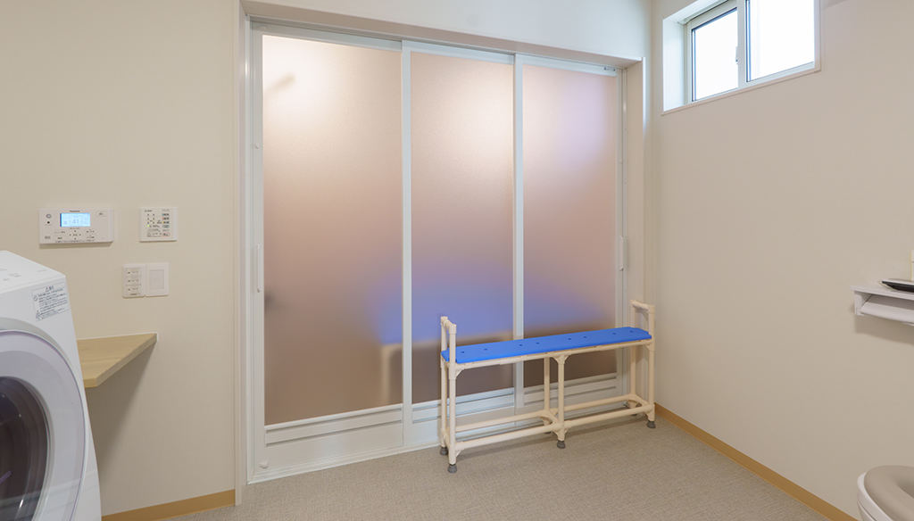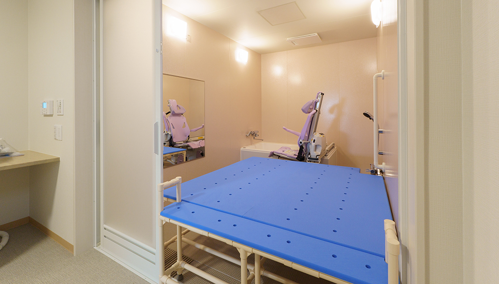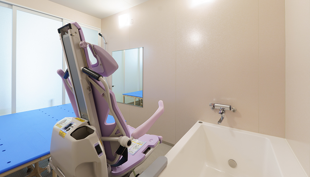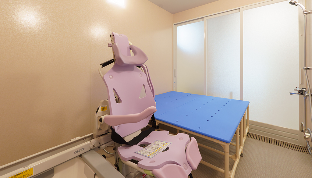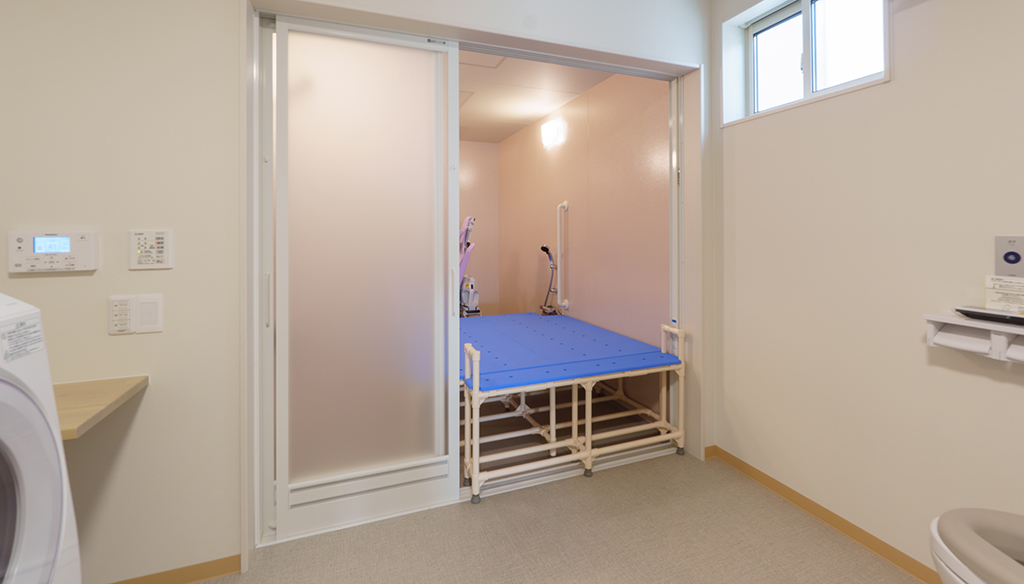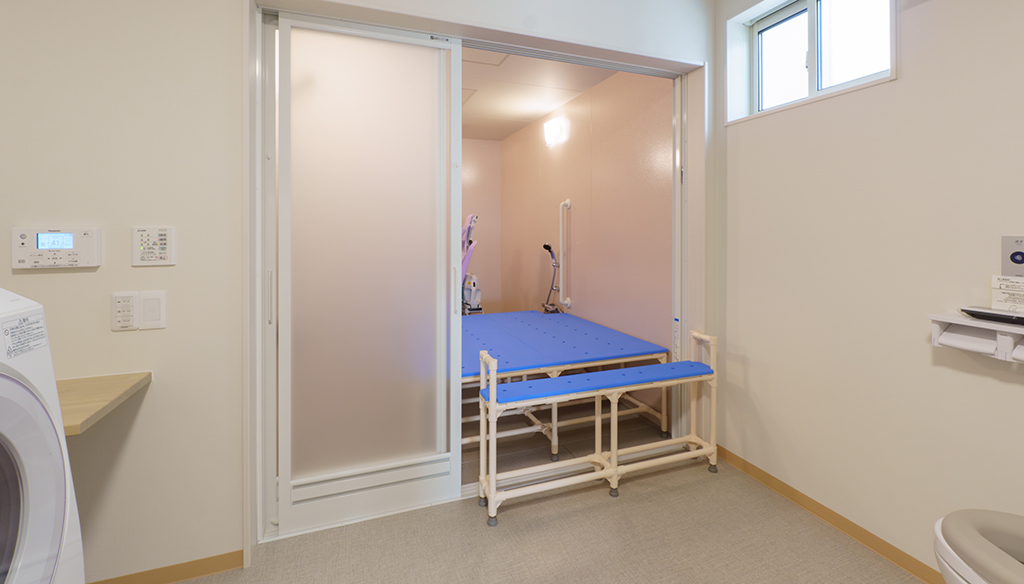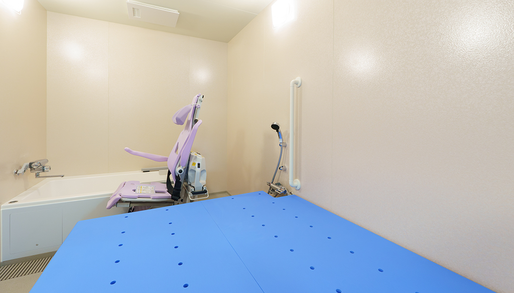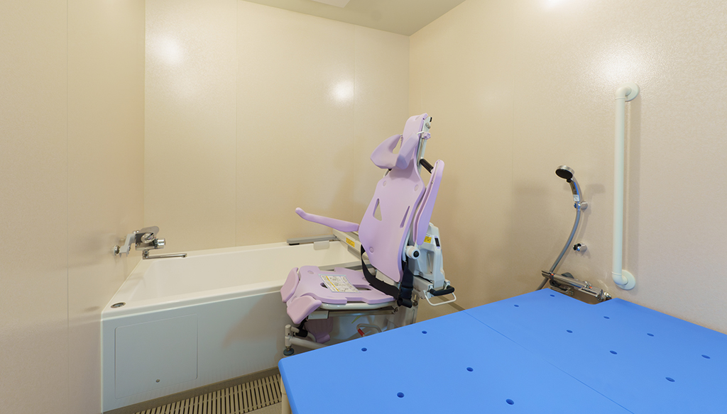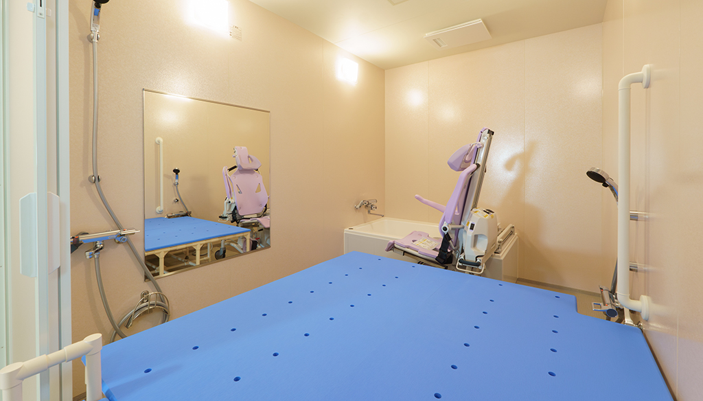大型ユニットで座ったまま介助入浴が可能!衛生的設備も完備しています。 約3.5m×4.5mある大型ユニットに座ったまま介助入浴が可能な「トゥッティ」を設置。 天井は通常よりも高めの2.5mで、柱欠きに対応しているため、広 ... 続きを読む