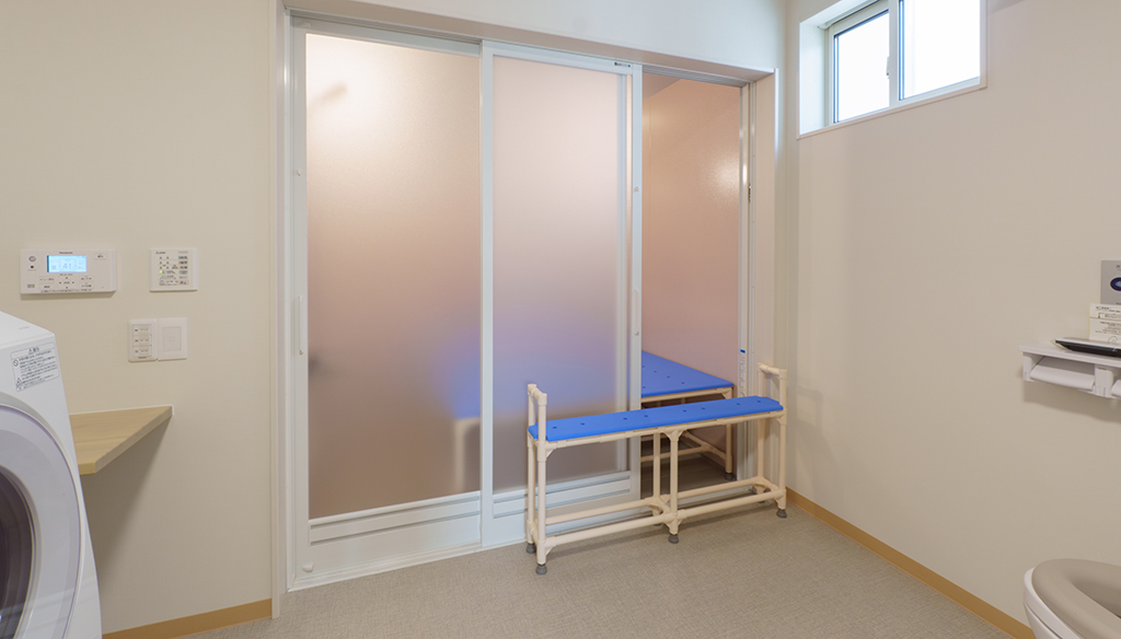介護入浴機器(シャワー浴タイプ)と大型浴槽の設置に対応 6.1m×7mの広々としたユニット内にシャワー浴タイプの介護入浴機器「セレーノ」と2000×1600サイズの大型浴槽を設置。 「セレーノ」はストレッチャーに寝たまま ... 続きを読む