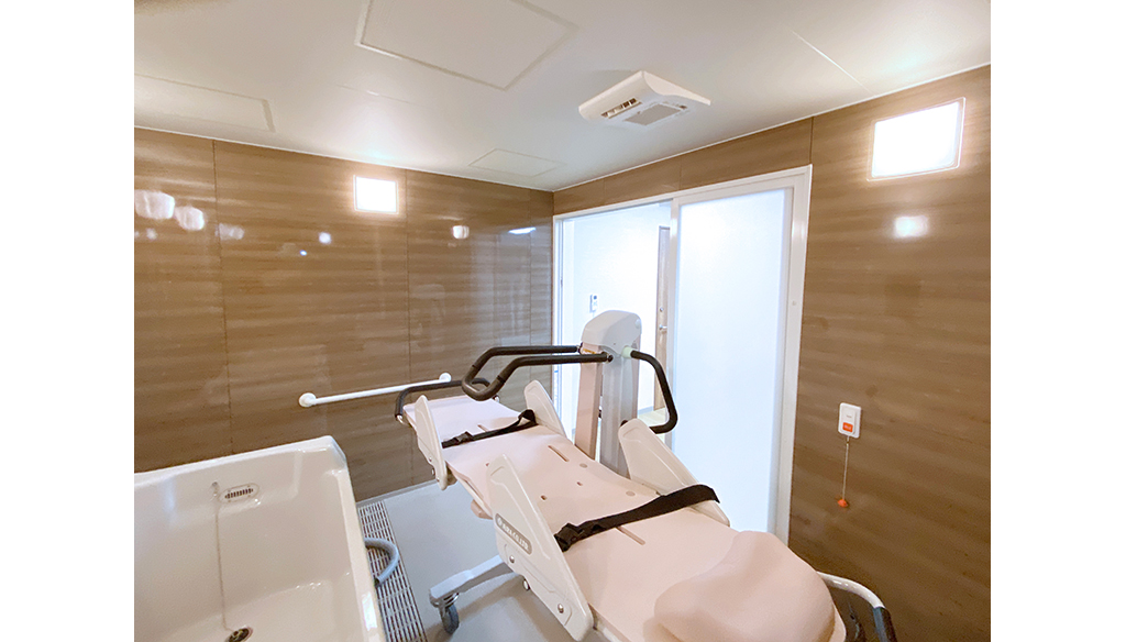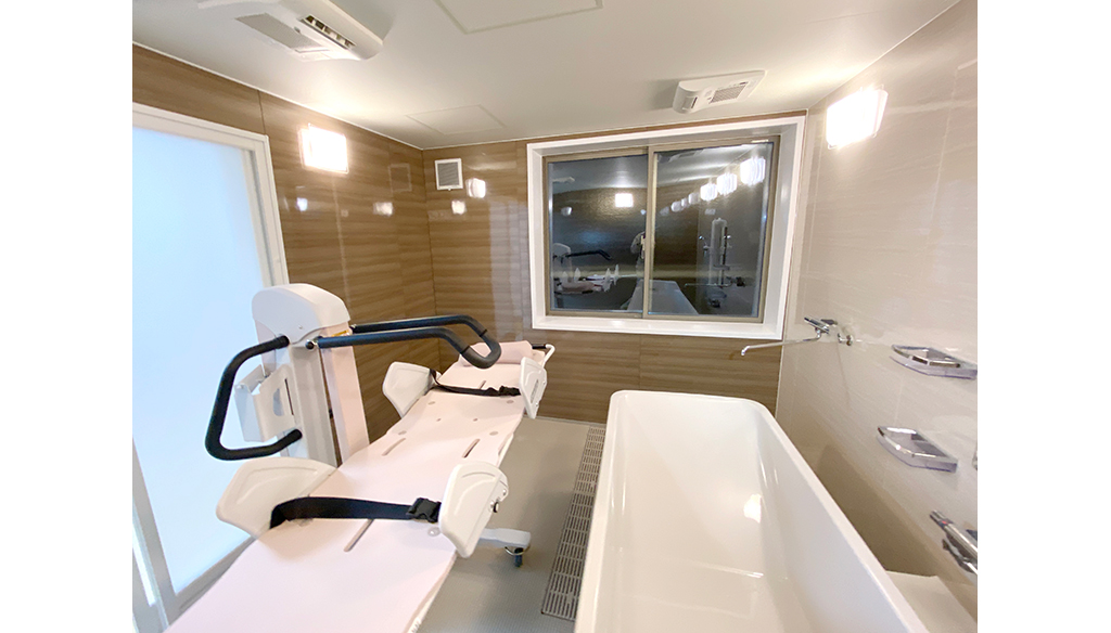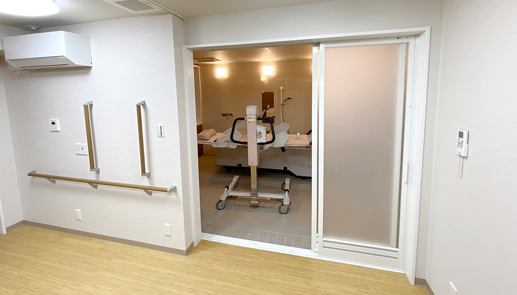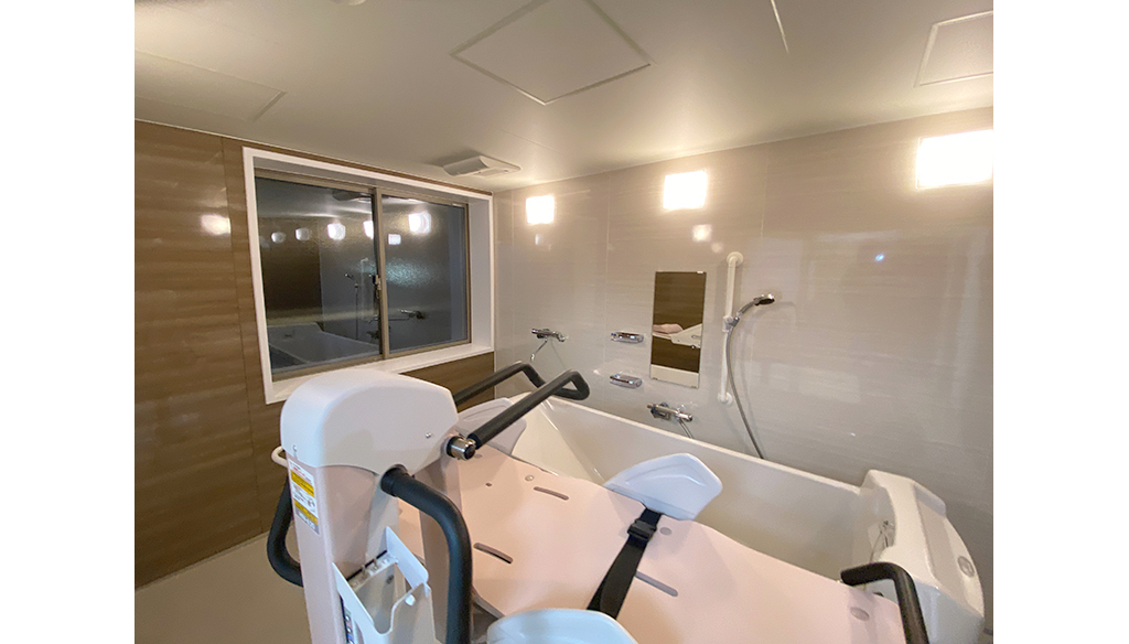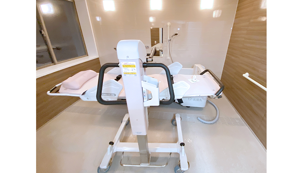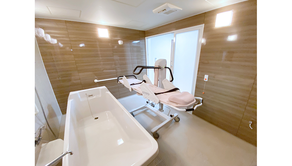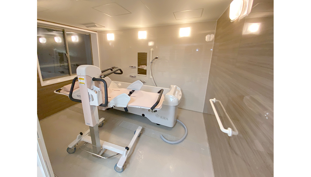 大型ユニットで座ったまま介助入浴が可能!衛生的設備も完備しています。 約3.5m×4.5mある大型ユニットに座ったまま介助入浴が可能な「トゥッティ」を設置。 天井は通常よりも高めの2.5mで、柱欠きに対応しているため、広 ... 続きを読む
