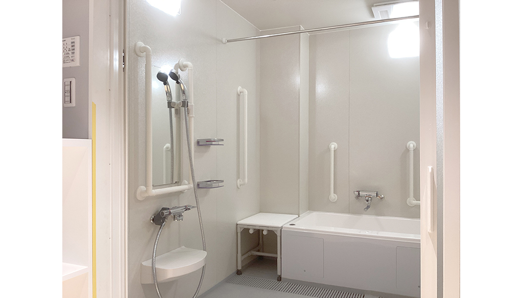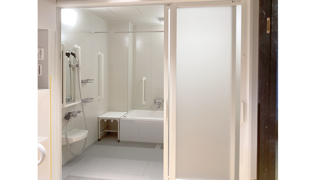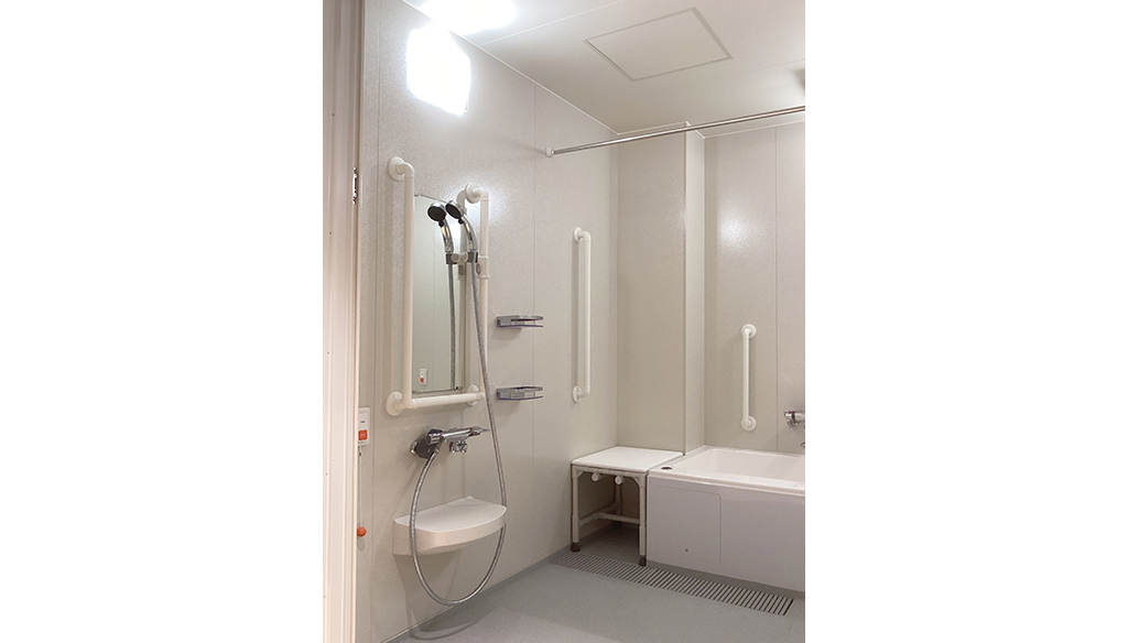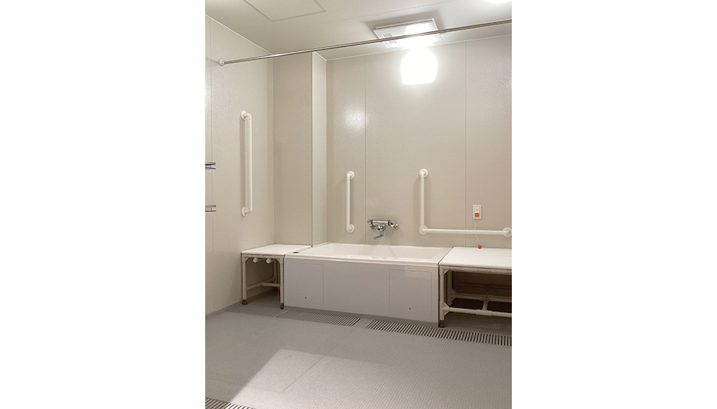 介護入浴機器(シャワー浴タイプ)と大型浴槽の設置に対応 6.1m×7mの広々としたユニット内にシャワー浴タイプの介護入浴機器「セレーノ」と2000×1600サイズの大型浴槽を設置。 「セレーノ」はストレッチャーに寝たまま ... 続きを読む