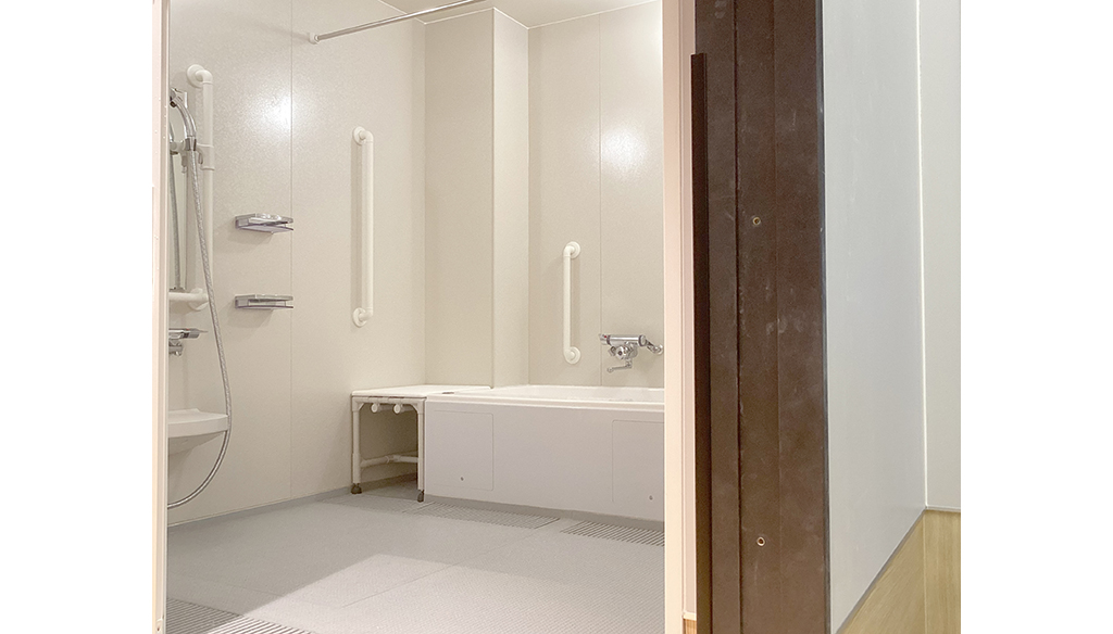 大型ユニットで座ったまま介助入浴が可能!衛生的設備も完備しています。 約3.5m×4.5mある大型ユニットに座ったまま介助入浴が可能な「トゥッティ」を設置。 天井は通常よりも高めの2.5mで、柱欠きに対応しているため、広 ... 続きを読む