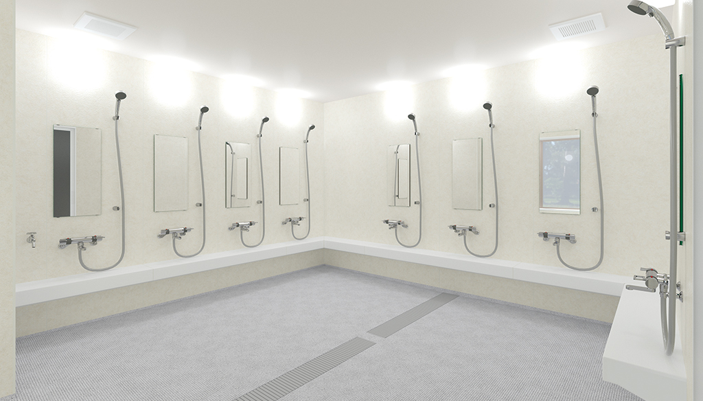 - 洗い場8箇所(サーモシャワー水栓x8、ミラー300*700x8)