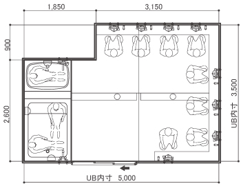 システムバス内寸:3,500mm×5,000mm×高さ2,200mm