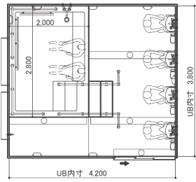システムバス内寸:3,800mm×4,200mm×高さ2,400mm