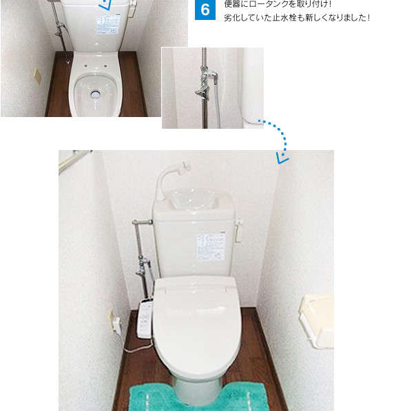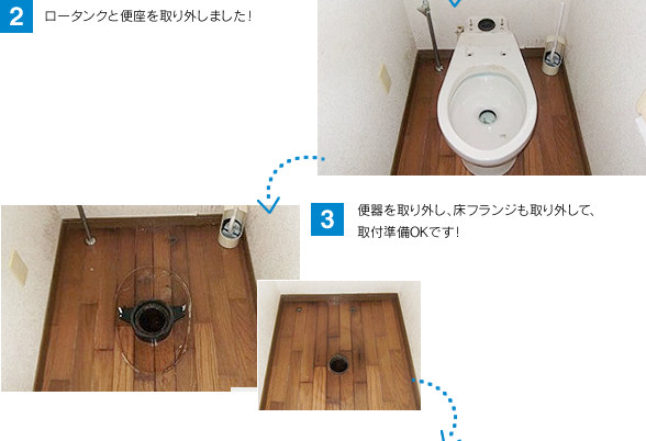 サービス部門でリフォームを行った事例です。リフォームマニュアルに添って作業を行えば、このような便器の取替えが個人でも可能です!