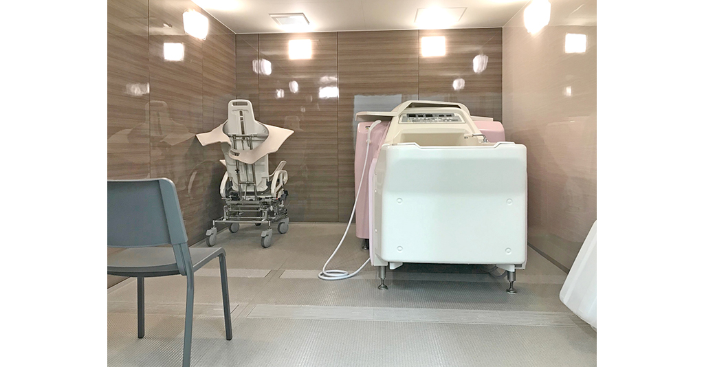 介護入浴機器(シャワー浴タイプ)と大型浴槽の設置に対応 6.1m×7mの広々としたユニット内にシャワー浴タイプの介護入浴機器「セレーノ」と2000×1600サイズの大型浴槽を設置。 「セレーノ」はストレッチャーに寝たまま ... 続きを読む