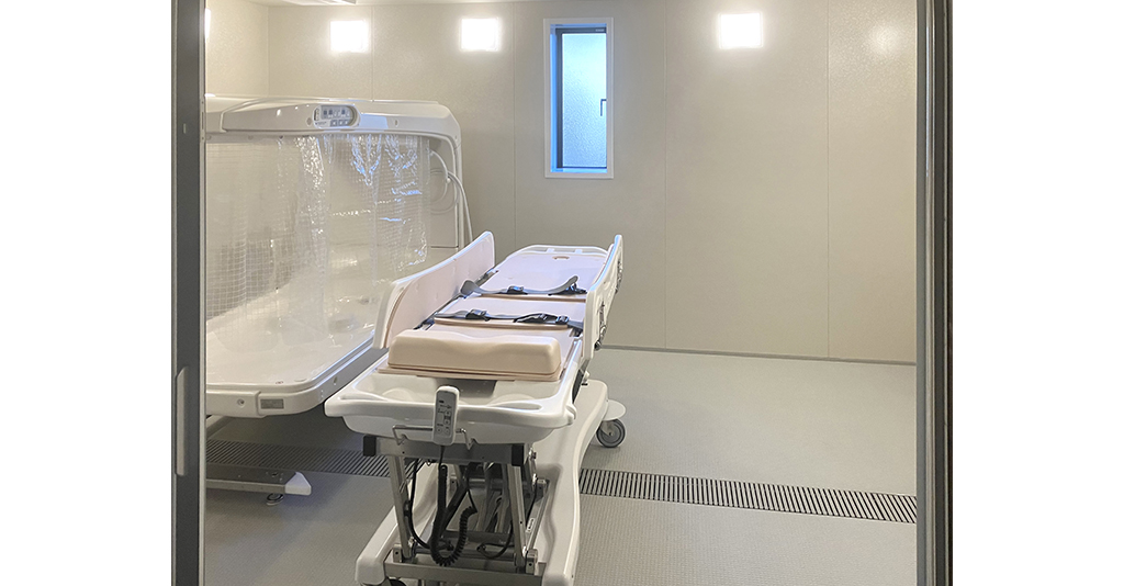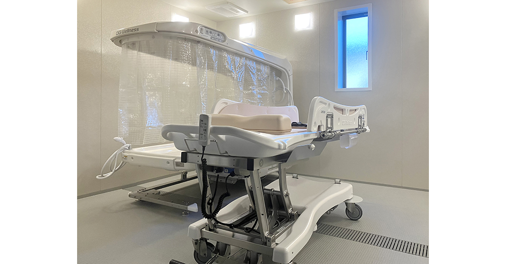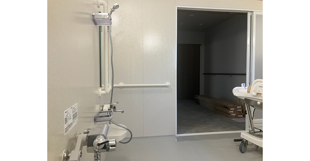介護入浴機器(シャワー浴タイプ)と大型浴槽の設置に対応 6.1m×7mの広々としたユニット内にシャワー浴タイプの介護入浴機器「セレーノ」と2000×1600サイズの大型浴槽を設置。 「セレーノ」はストレッチャーに寝たまま ... 続きを読む
