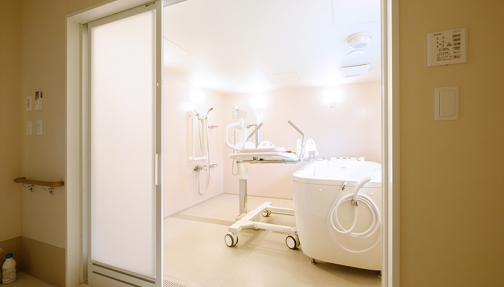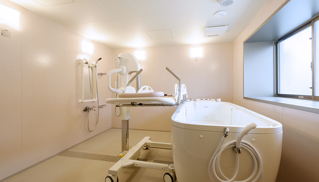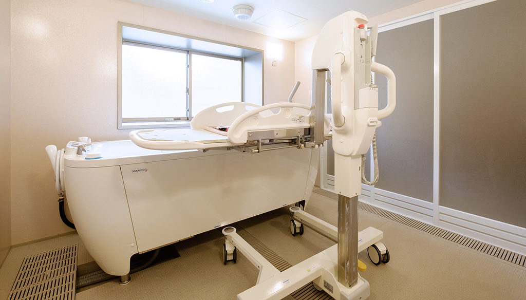 大型ユニットで座ったまま介助入浴が可能!衛生的設備も完備しています。 約3.5m×4.5mある大型ユニットに座ったまま介助入浴が可能な「トゥッティ」を設置。 天井は通常よりも高めの2.5mで、柱欠きに対応しているため、広 ... 続きを読む