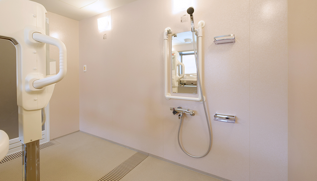 介護入浴機器(シャワー浴タイプ)と大型浴槽の設置に対応 6.1m×7mの広々としたユニット内にシャワー浴タイプの介護入浴機器「セレーノ」と2000×1600サイズの大型浴槽を設置。 「セレーノ」はストレッチャーに寝たまま ... 続きを読む