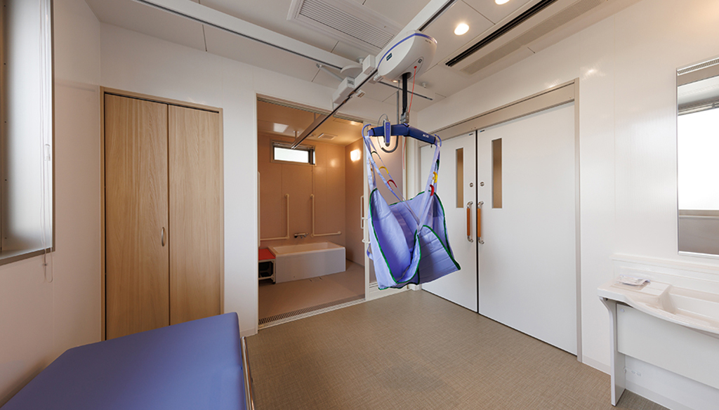 柔軟なセミオーダーに対応 こちらの施設は、持ち上げない、抱え上げない介護「ノーリフティングケア」に基づいて設計されています。