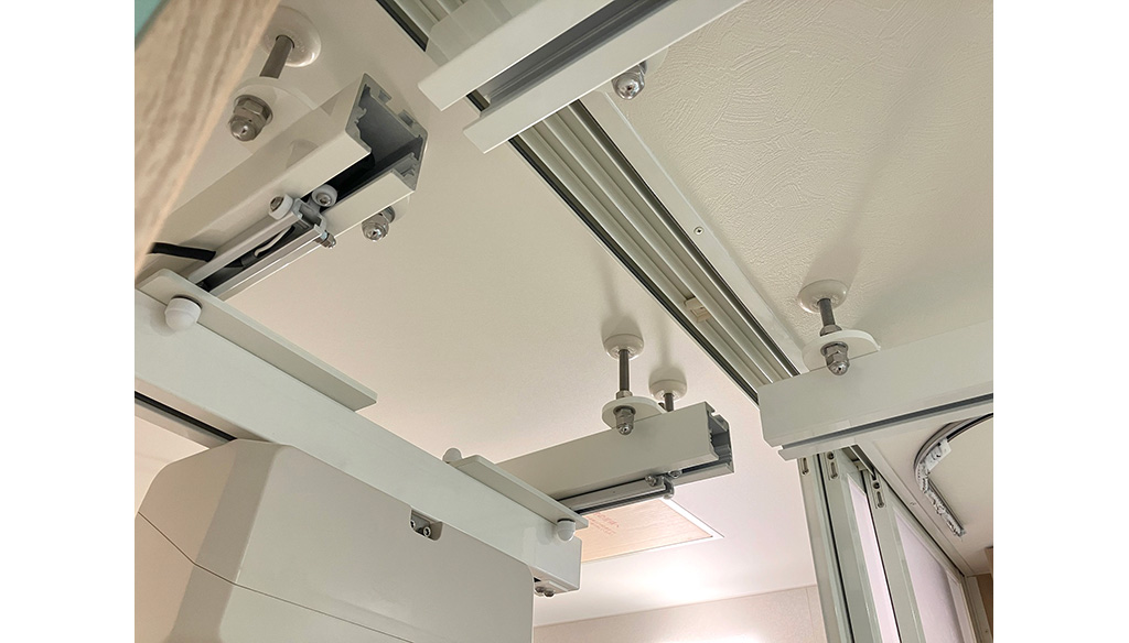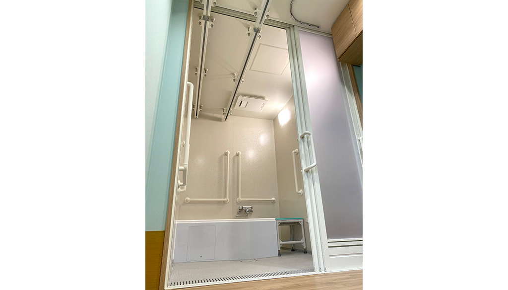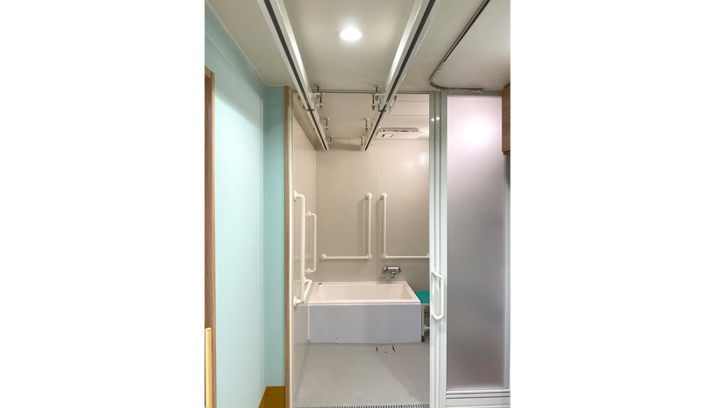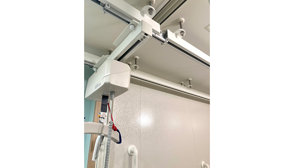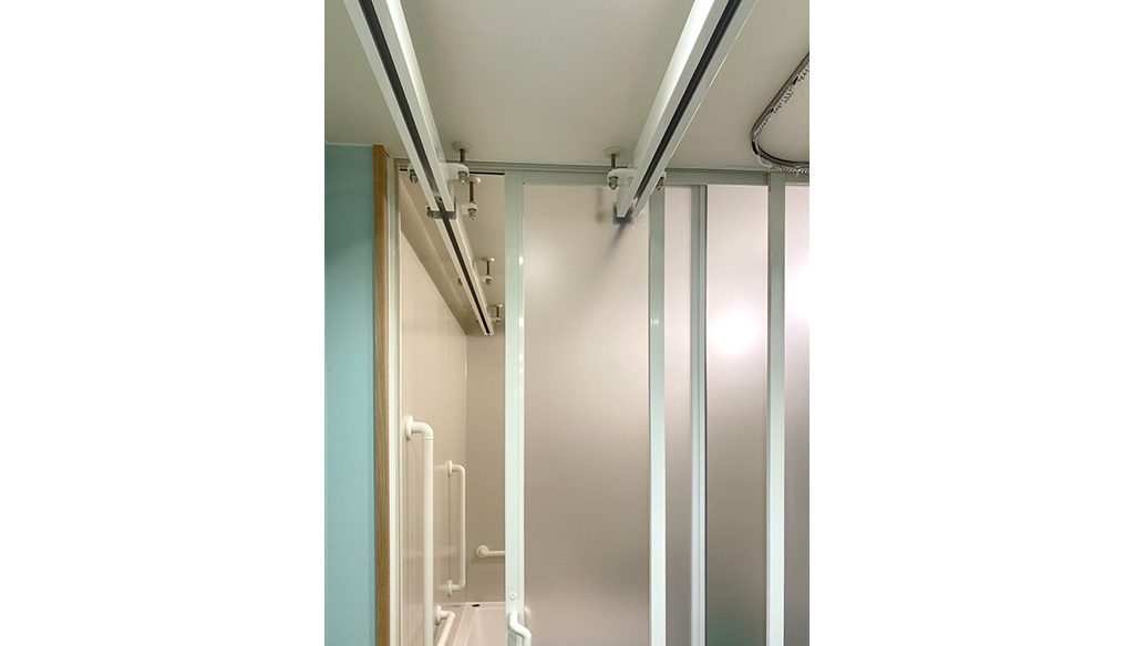 脱衣室から浴室内にかけて天井走行リフトを設置し、安全かつスムーズな移動をサポートします。