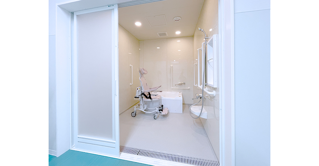 介護入浴機器(シャワー浴タイプ)と大型浴槽の設置に対応 6.1m×7mの広々としたユニット内にシャワー浴タイプの介護入浴機器「セレーノ」と2000×1600サイズの大型浴槽を設置。 「セレーノ」はストレッチャーに寝たまま ... 続きを読む