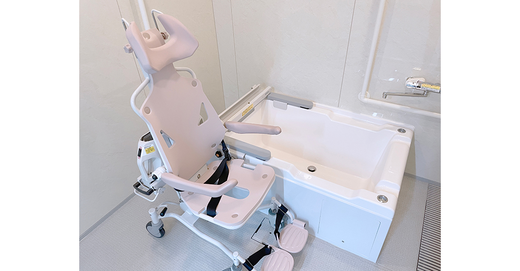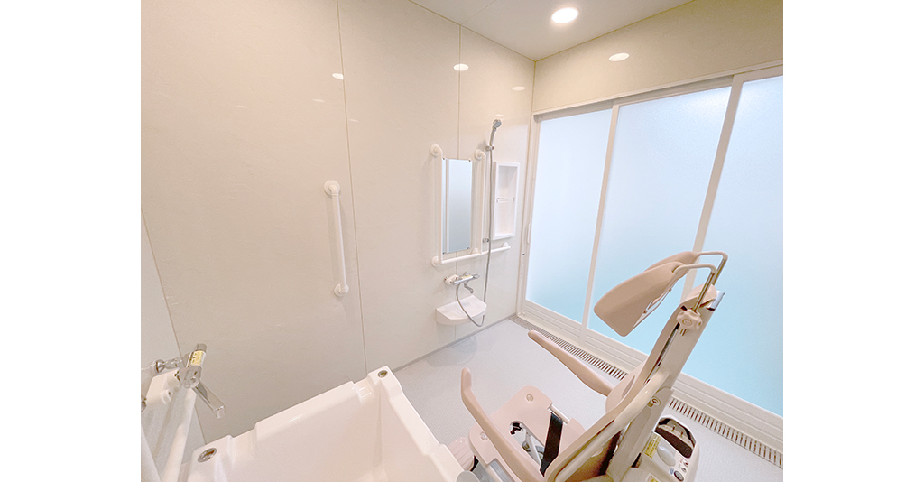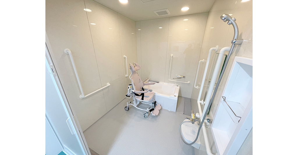大型ユニットで座ったまま介助入浴が可能!衛生的設備も完備しています。 約3.5m×4.5mある大型ユニットに座ったまま介助入浴が可能な「トゥッティ」を設置。 天井は通常よりも高めの2.5mで、柱欠きに対応しているため、広 ... 続きを読む