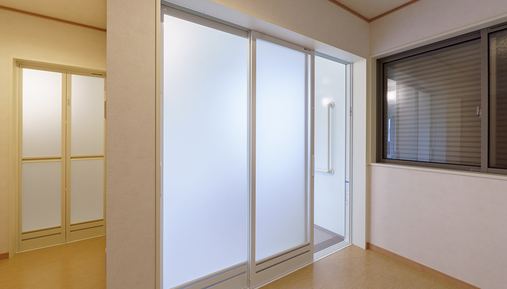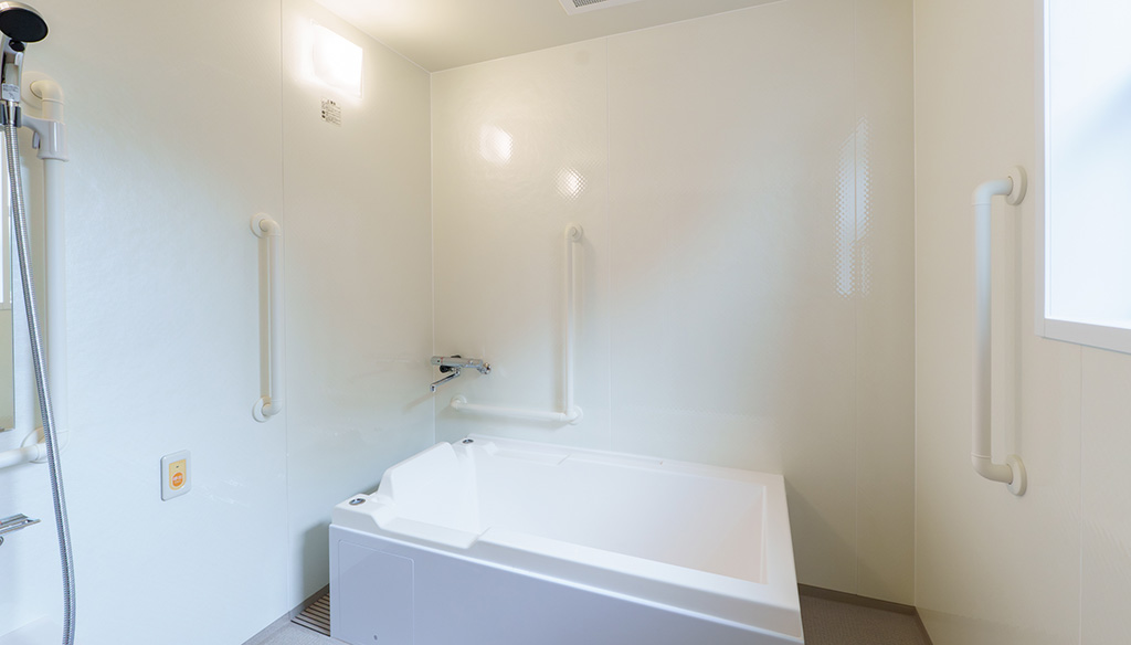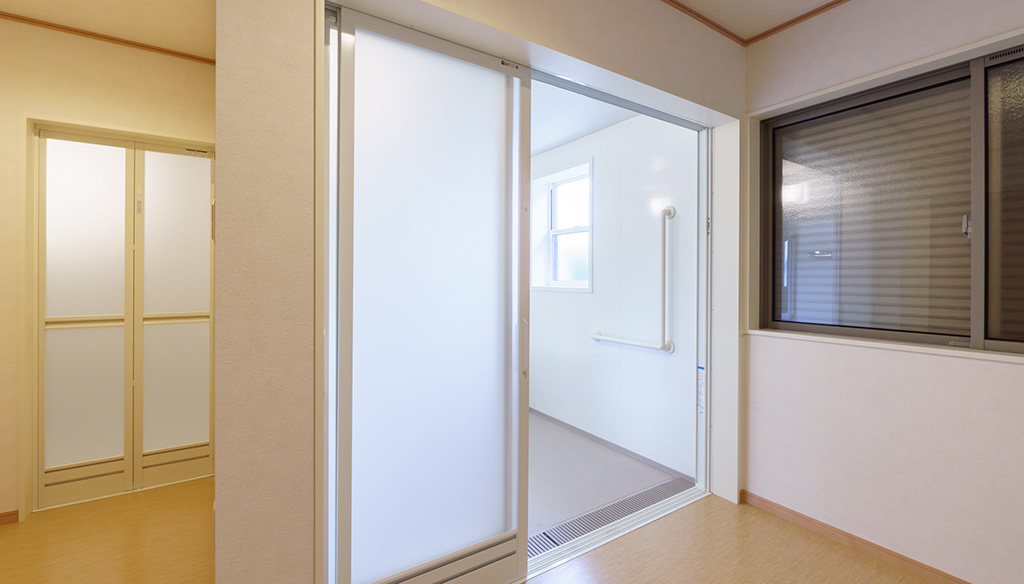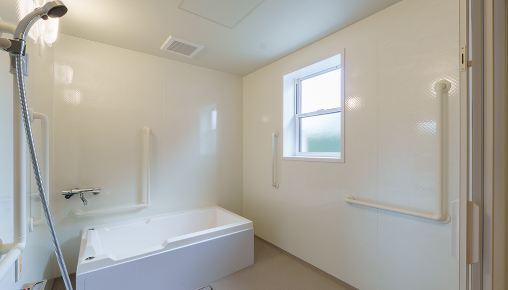 快適な入浴と将来の設備導入に備えた柔軟設計浴室の利用者の将来を見据え、ゆとりけあPROVEのSYX-2024A01タイプを採用。将来の重度化にも対応できる柔軟な設計です。