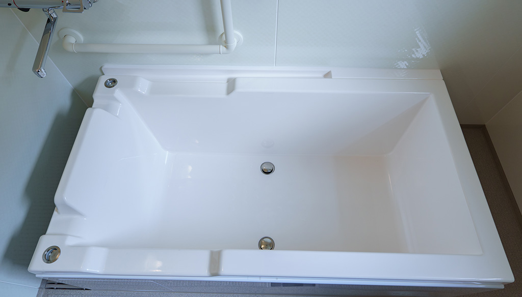 浴槽は、当社オリジナルのPROVE浴槽を採用。自立支援・介助・リフト入浴に適した設計で、大きめの1400サイズの浴槽は、リフト付きシャワーキャリーの利用にも適しています。