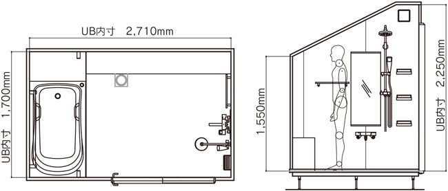 システムバス内寸:1,700mm×2,710mm 設計価格:別途お問い合わせください(現場状況により設計価格は異なります)